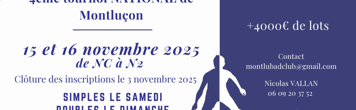 Le Montluçon Badminton Club est heureux de vous convier à son 4ème Tournoi National.