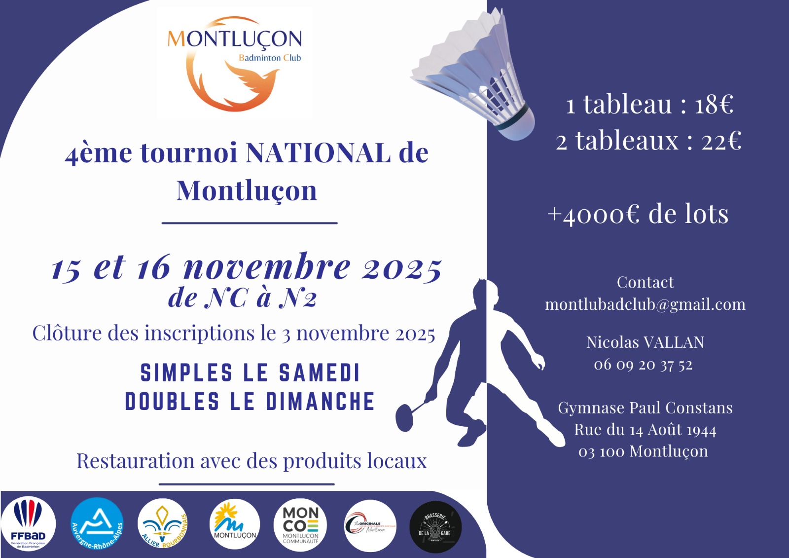 Inscriptions via Badnet ouvertes prochainement.
